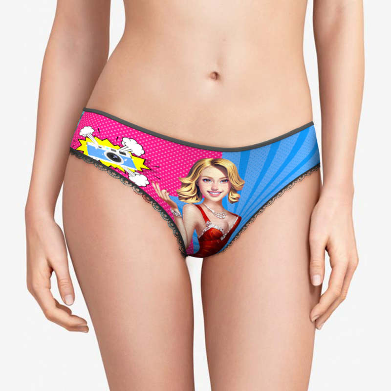Custom Face Panties Personalized Cartoon-Style Lace Panties for Women