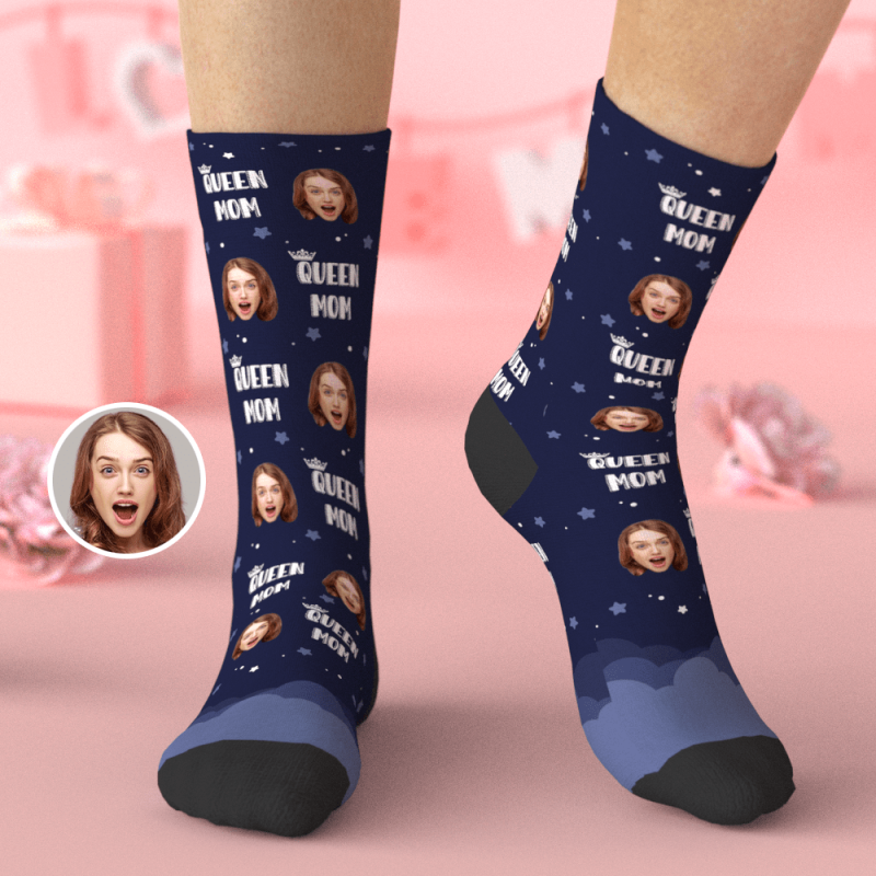 Custom Face Socks with Galaxy Space Gifts for Mum - Queen Mum