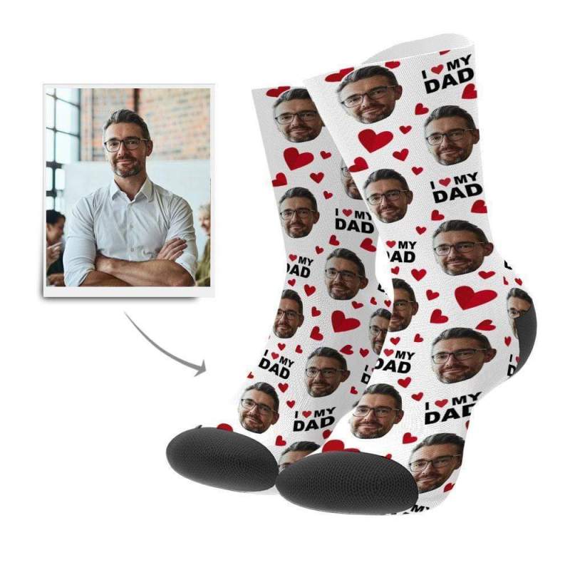 Custom Photo Socks Love Dad Love Heart Style Face Mash Socks