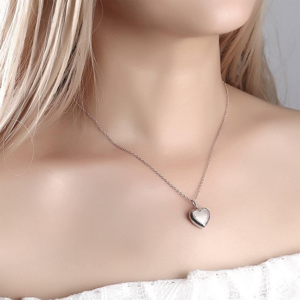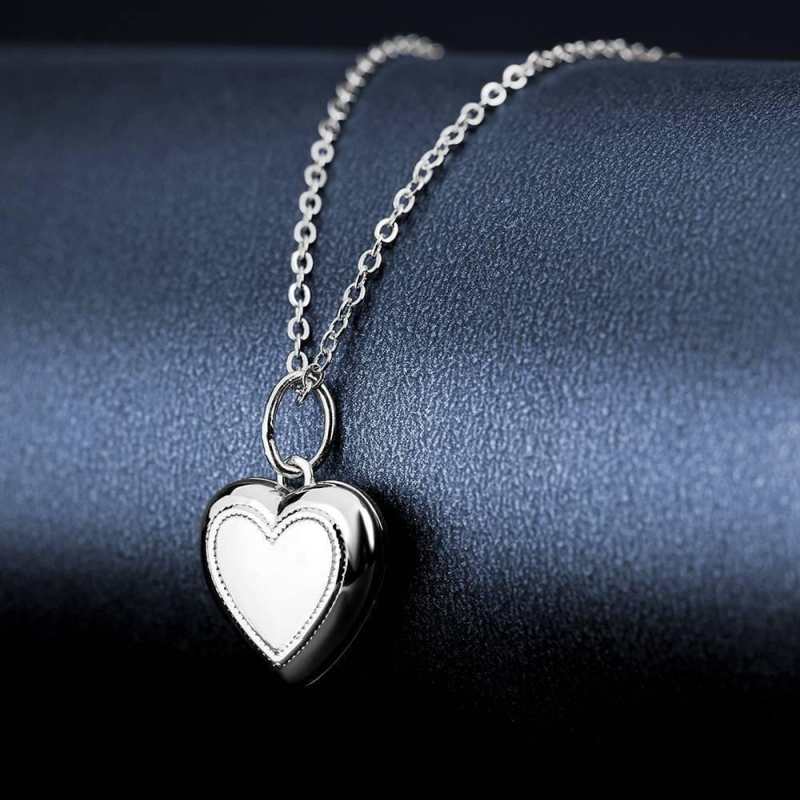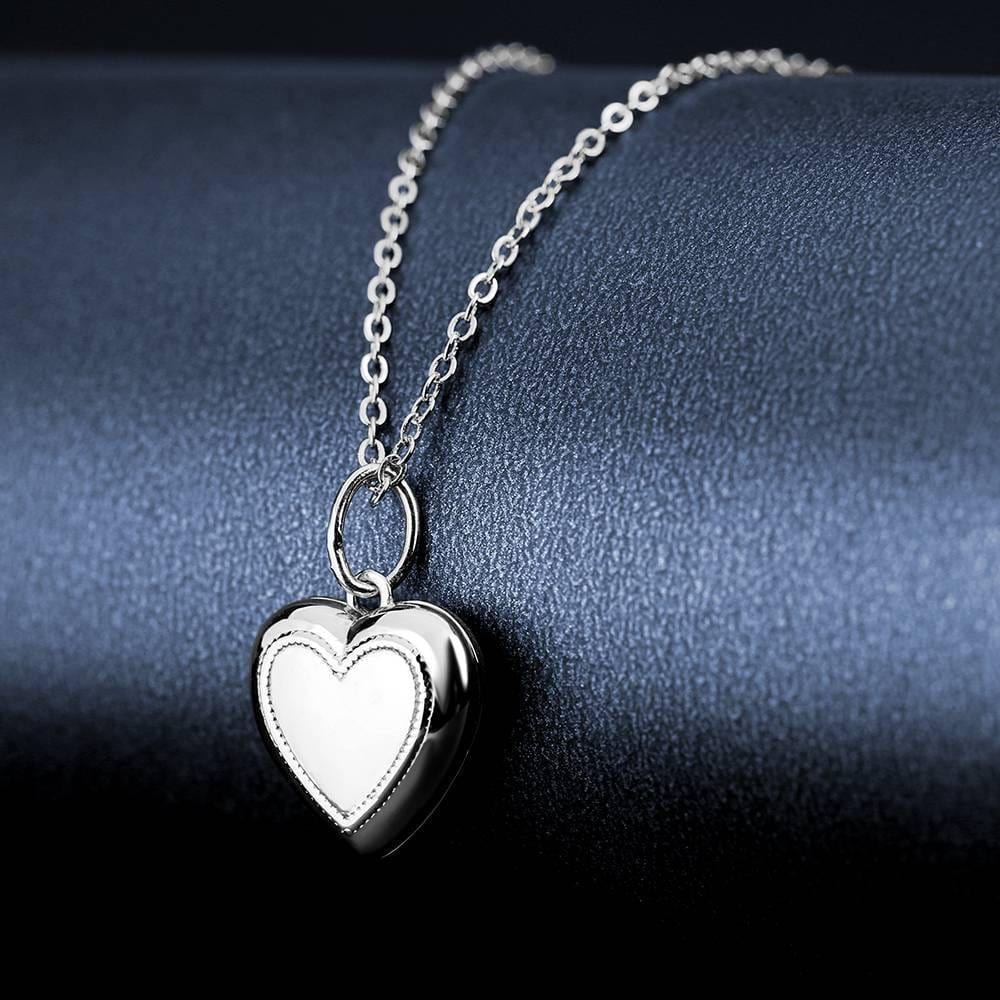 Heart Photo Locket Necklace With Engraving Name Gifts for Her Platinum Plated