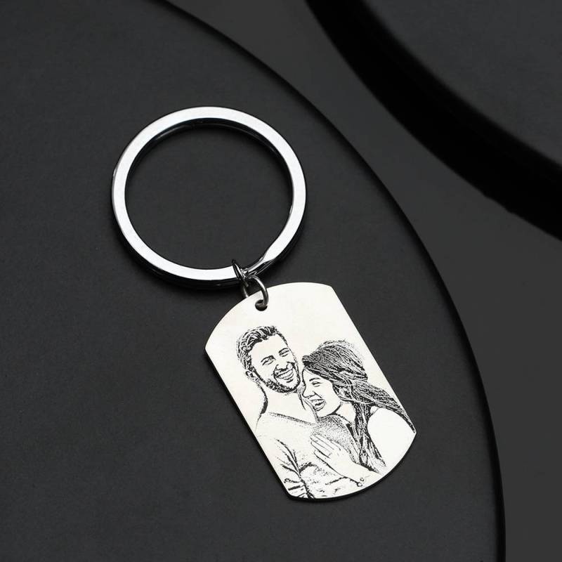 Photo Engraved Tag Key Chain Stainless Steel for Couple Photo Keychain