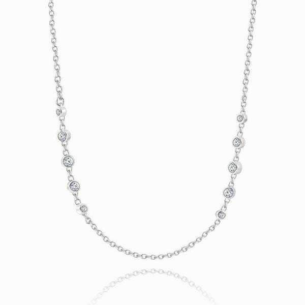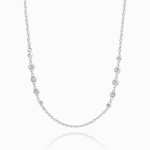 Silver Cable Chain Basic Necklace With CZ Beads 17.7in Adjustable