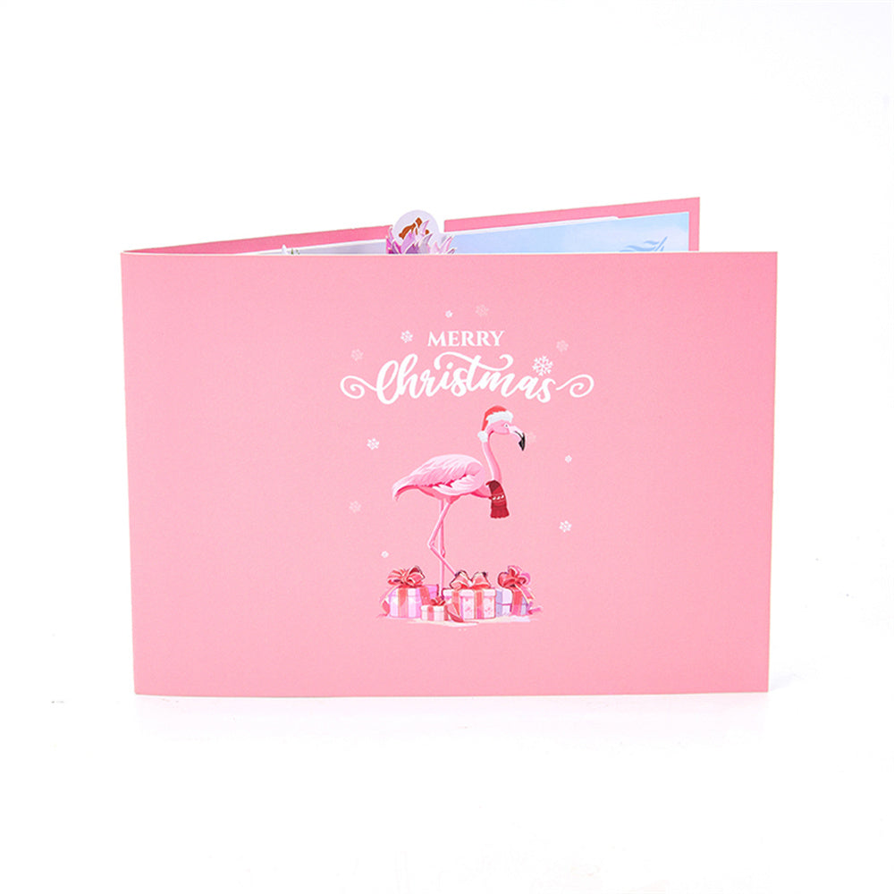 Christmas 3D Pop Up Card Pink Christmas Tree Flamingo Greeting Card
