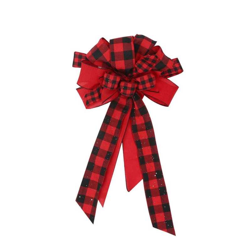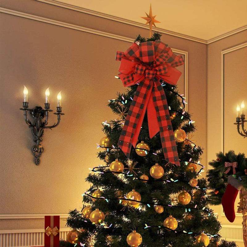 Christmas Tree Topper Bow Buffalo Plaid Toppers Burlap Decorative Bows Ornament For Xmas Gift Bow