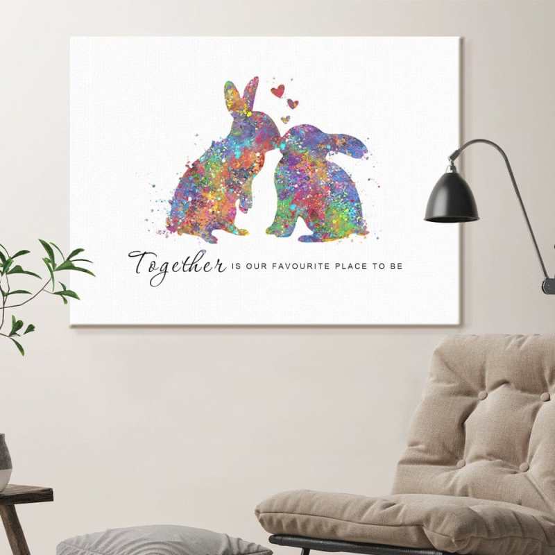 Couple Canvas Painting Rabbit Watercolour Art Print Valentines Day Gift