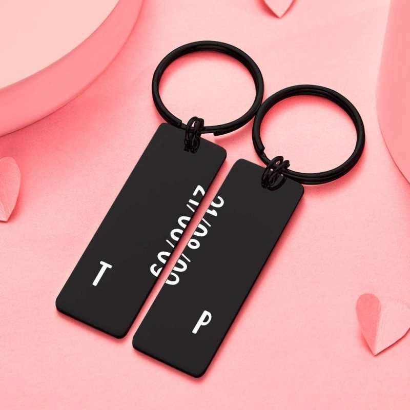 Couple Keychain Set with Date Valentine's Day Gifts Initial Letter