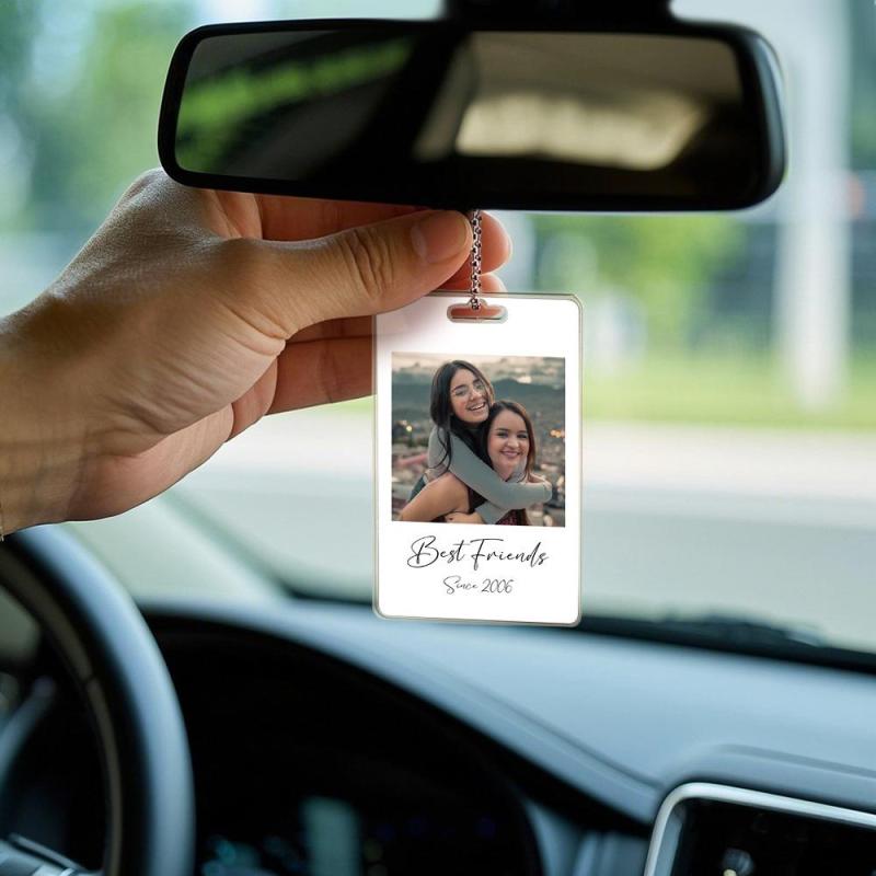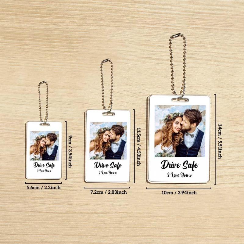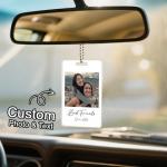 Custom Car Rearview Mirror Photo Tag Personalized Hanging Ornament with Picture and Text Drive Safe Gift for Him or Her