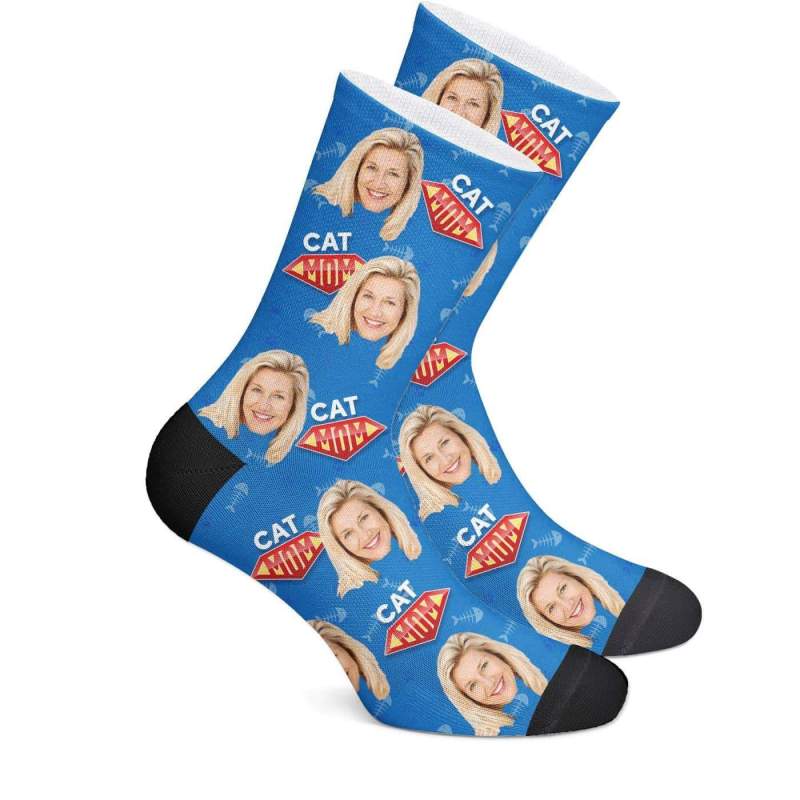 Cat Mom Fift Custom Face Socks Cat Memorial Gift