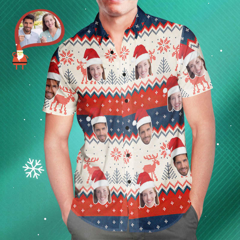 Print your face on a real Men's All Over Print Christmas Hawaiian Shirt. Cheer you up or show your love and support for your loved one with your awesome idea. The best custom gifts for your lover, family and friends.