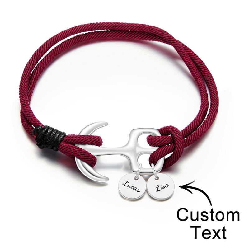 Custom Engraved Bracelet Marine Anchor Cord Bracelet Gift for Men