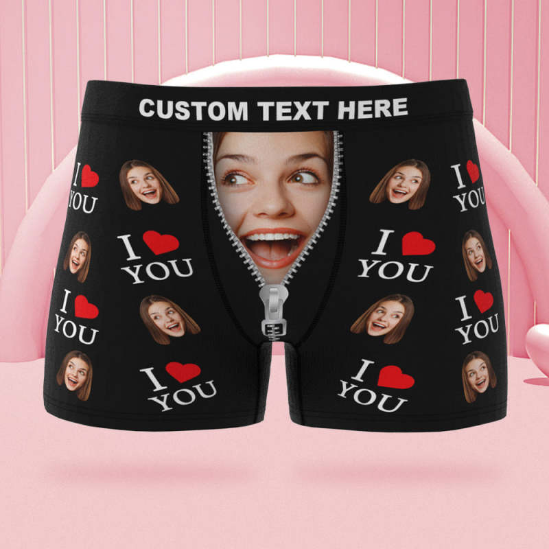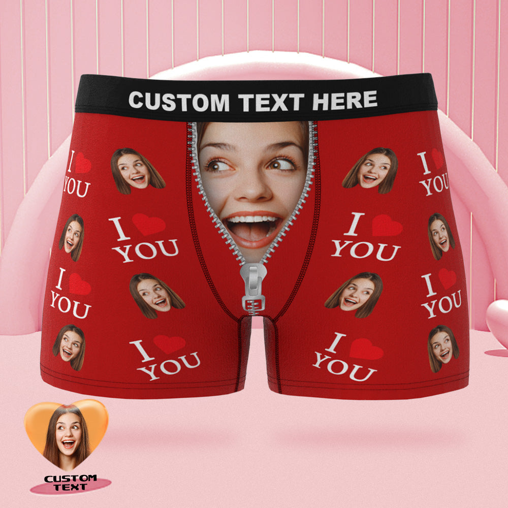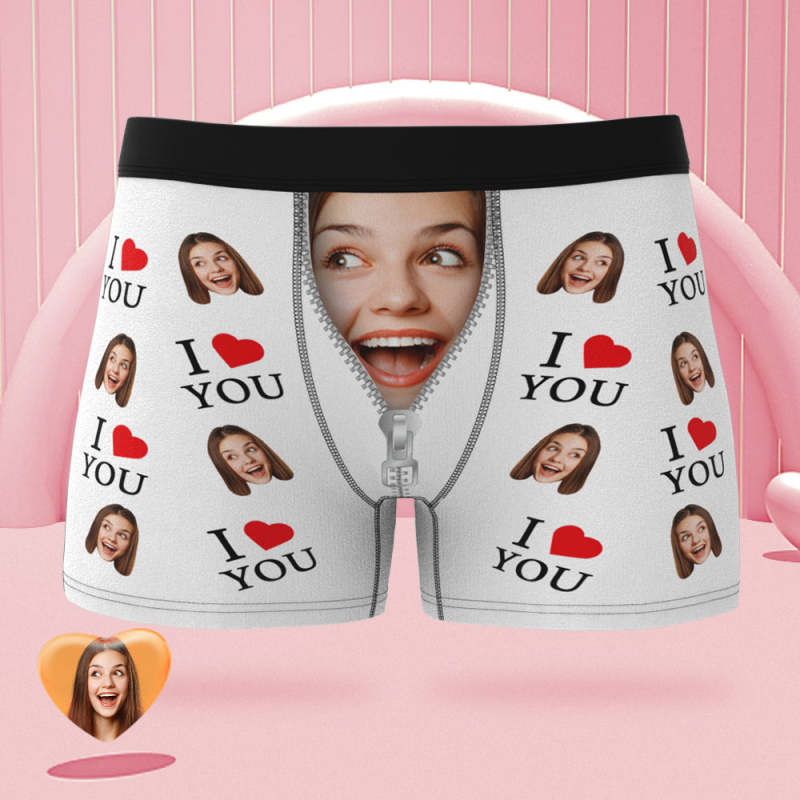 Custom Face Boxer Briefs I Love You Personalized Naughty Valentine's Day Gift for Him