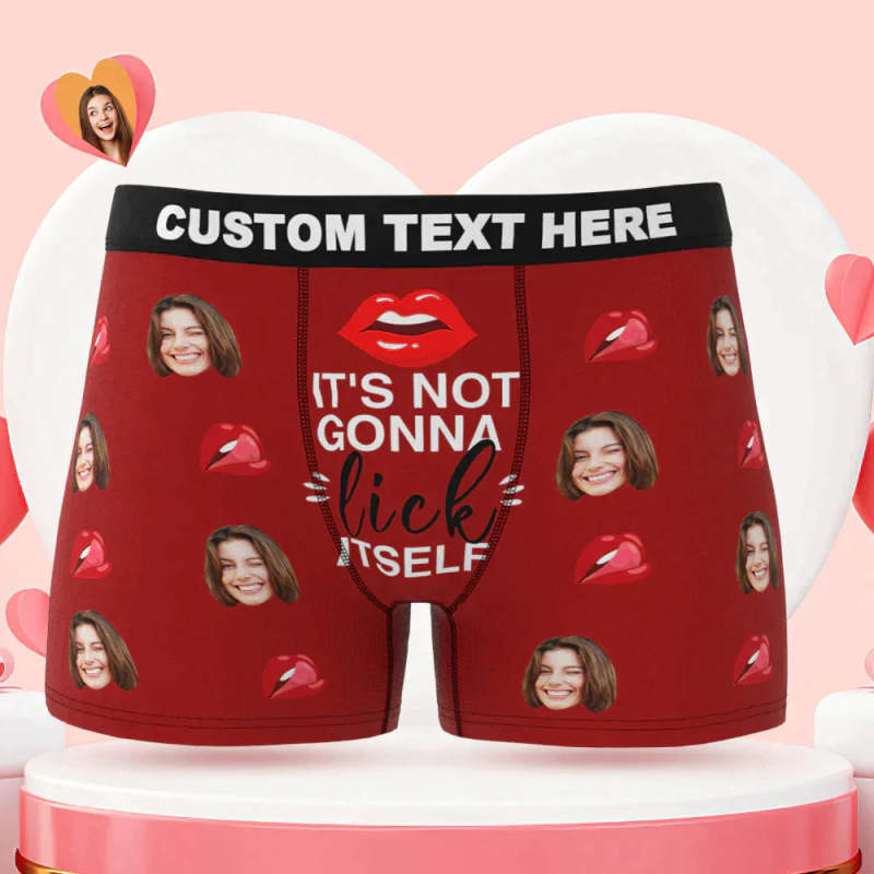 Custom Face Boxer Briefs It's Not Gonna Lick Itself Personalized Naughty Valentine's Day Gift for Him