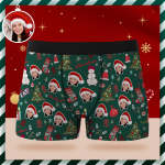 Custom Face Boxer Briefs Personalized Green Underwear Santa Claus Christmas New Year Gift for Him