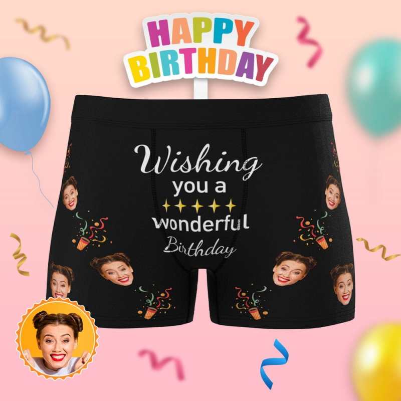 Custom Face Boxer Personalized Wish You Have a Wonderful Birthday Gifts
