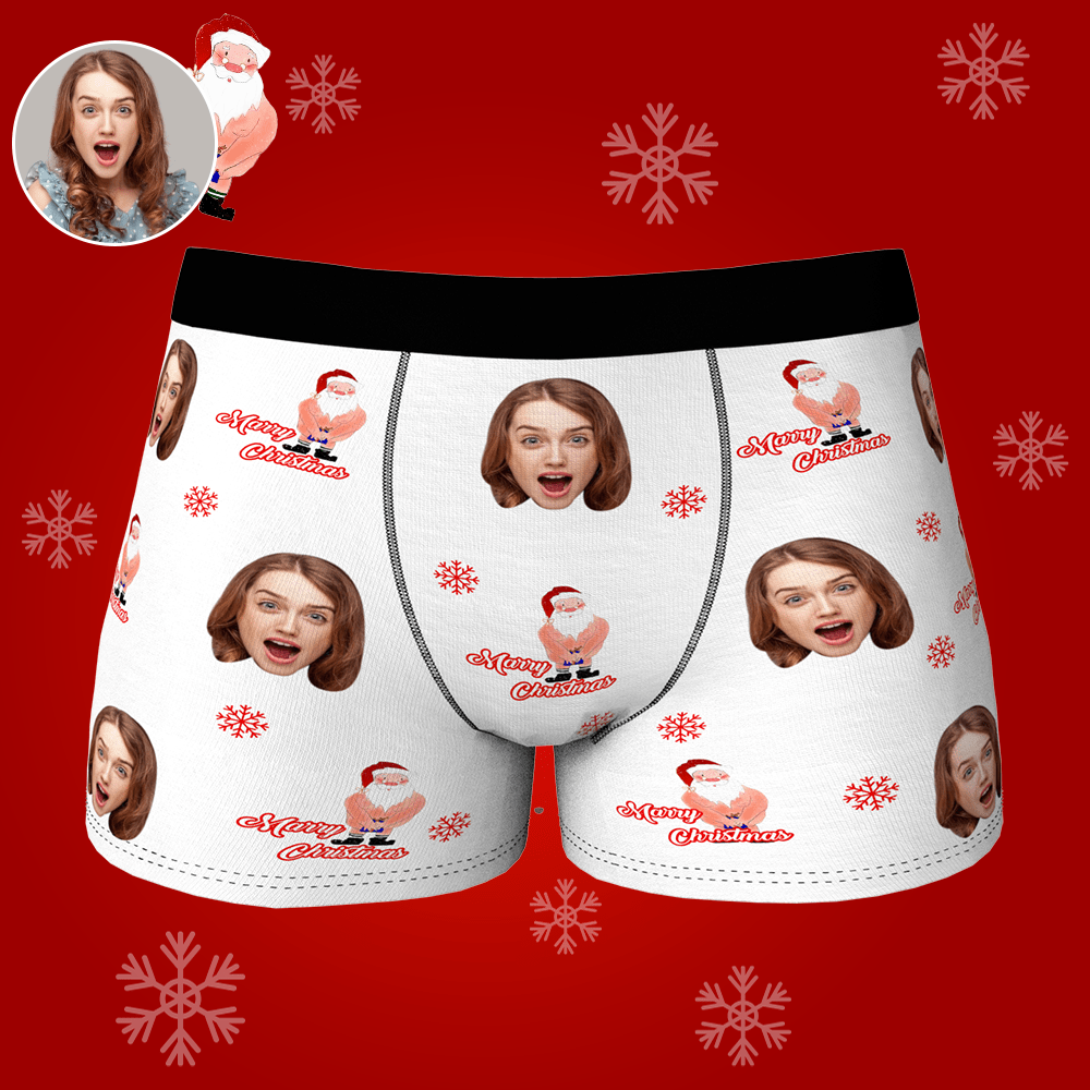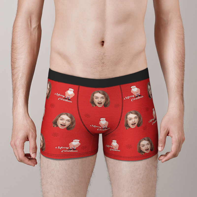 Custom Face Christmas Underwear Funny Christmas Santa Claus Boxer Best Christmas Gift For Boyfriend