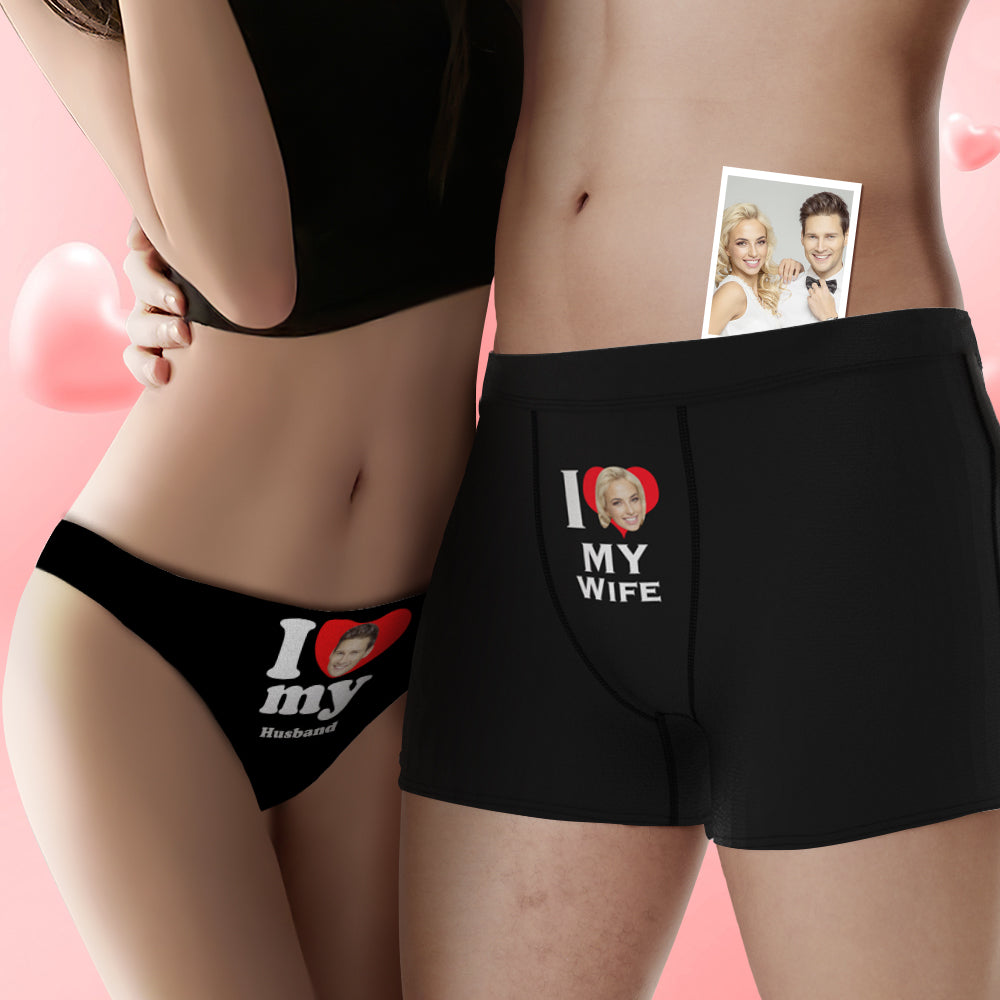 Custom Face Couple Underwear Love Heart Personalized Underwear Valentine's Day Gift
