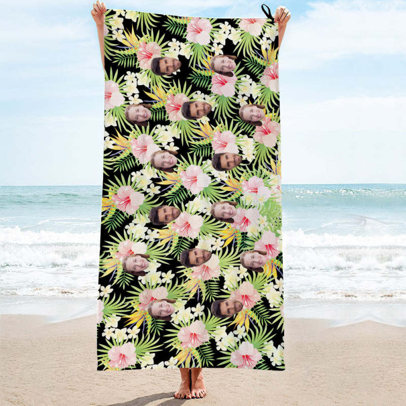 Custom Face Hawaii Style Towel Personalized Photo Towel Funny Gift