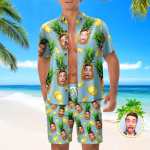 Custom Face Hawaiian Shirt And Beach Shorts Set Personalize Vacation Party Gifts for Men Pineapple
