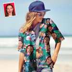 Custom Face Hawaiian Shirt Women's All Over Print Colorful Flowers Short Sleeve Shirt