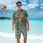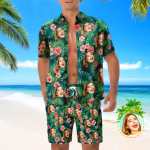 Custom Face Leaves & Flowers Hawaiian Shirt And Beach Shorts Set Personalized Men's Photo All Over Print Set Vacation Party Gift