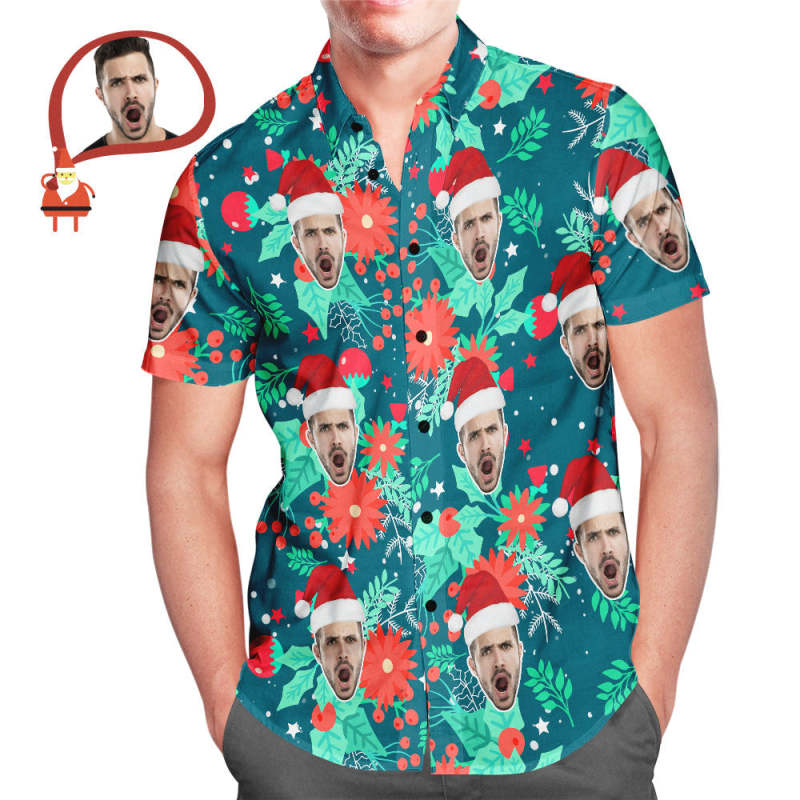 Print your face on a real Men's All Over Print Christmas Hawaiian Shirt. Cheer you up or show your love and support for your loved one with your awesome idea. The best custom gifts for your lover, family and friends.
