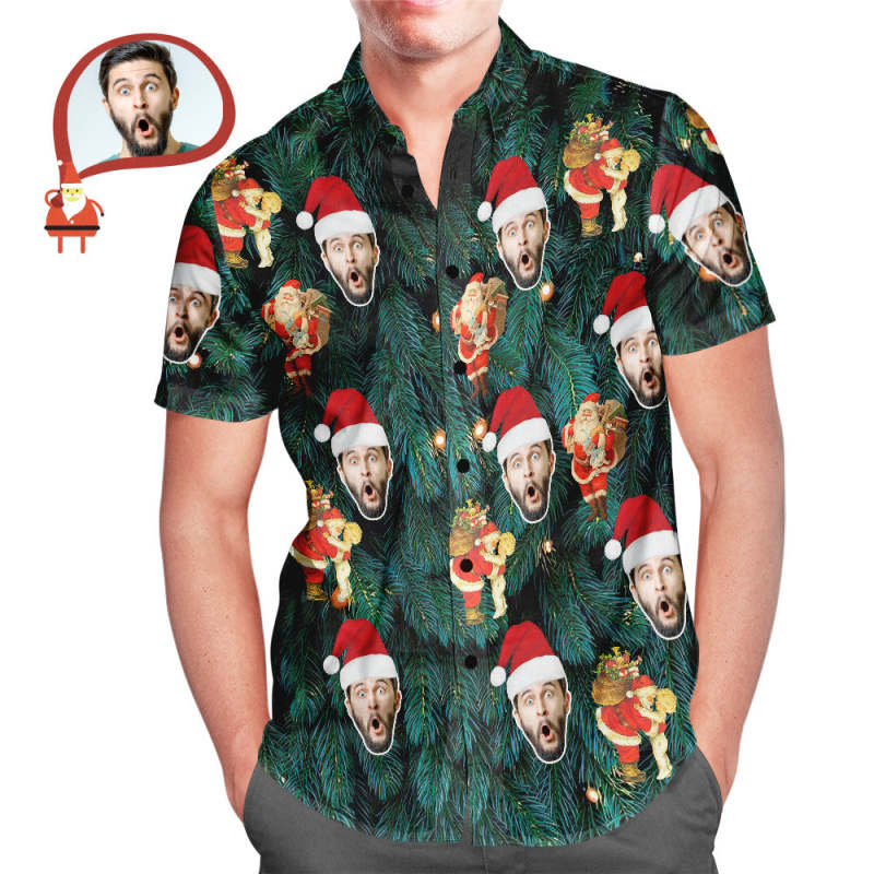 Custom Face Men's All Over Print Christmas Tree Style Hawaiian Shirt Christmas Gift
