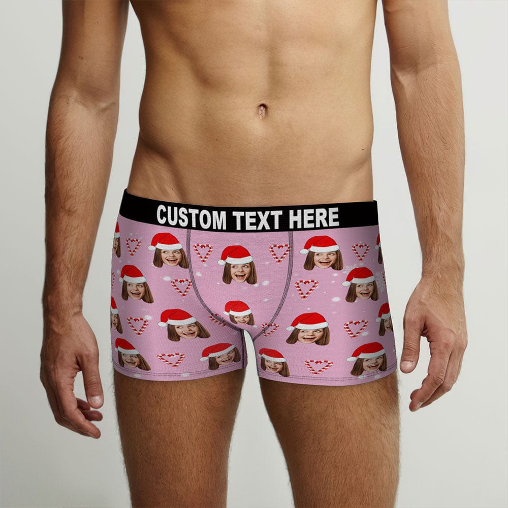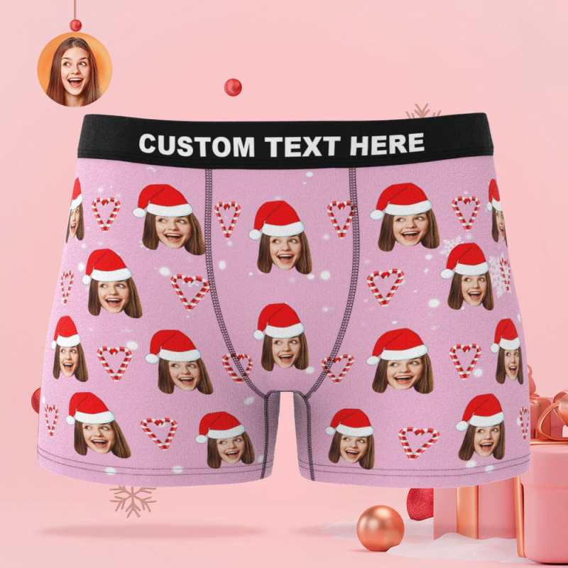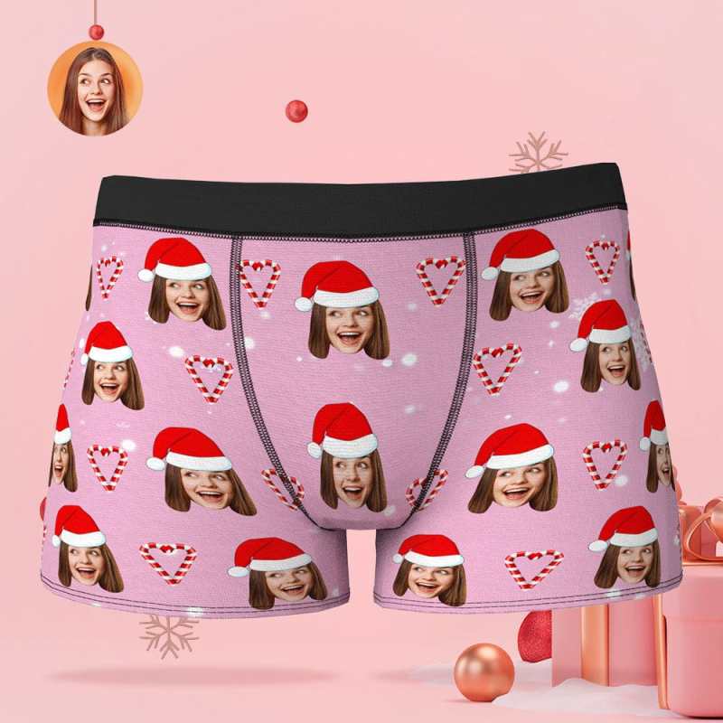 Custom Face Pink Christmas Candy Boxer Briefs Personalised Pink Christmas Gift