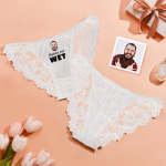 Elevate your lingerie collection with these cheeky delights featuring a front adorned with playful and whimsical motifs that bring a smile to your face. But that's not all - the back boasts sensuous lace detailing that adds a touch of glamour to your intimate moments. What makes these thongs truly special? They can be customized with the face of your boyfriend or husband, making them a unique and intimate gift. Embrace comfort, style, and a dash of romance with our bespoke women's thong panties - because your lingerie should be as special as you are!
