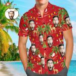 Custom Face Shirt Personalized Photo Men's Hawaiian Shirt Christmas Gift - Santa and Elk
