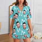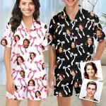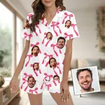 Custom Face Short Sleeve Pajamas Custom Bow Couple Gift Photo Pajamas Suit
