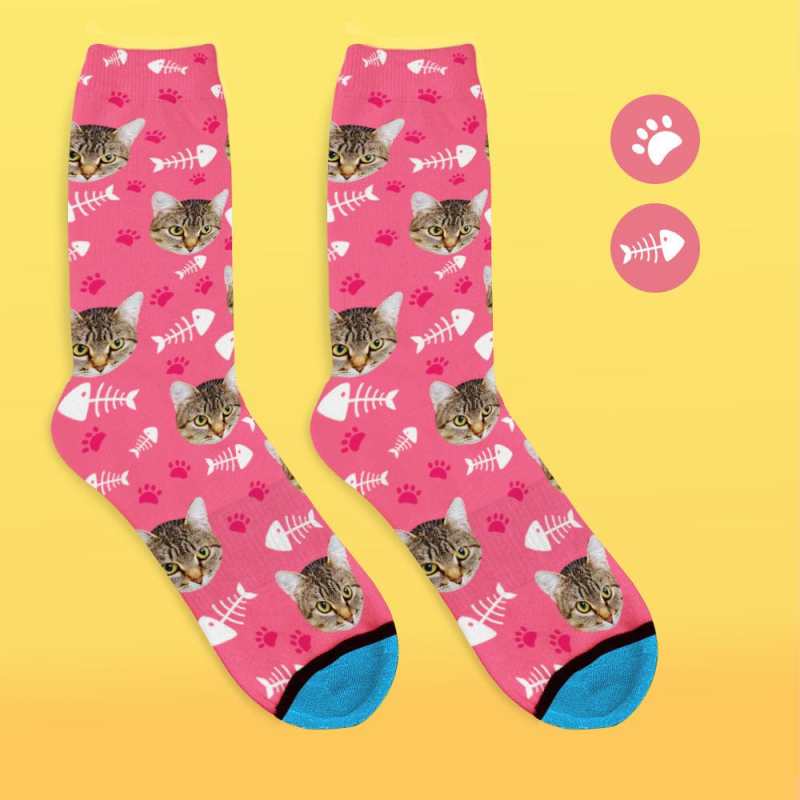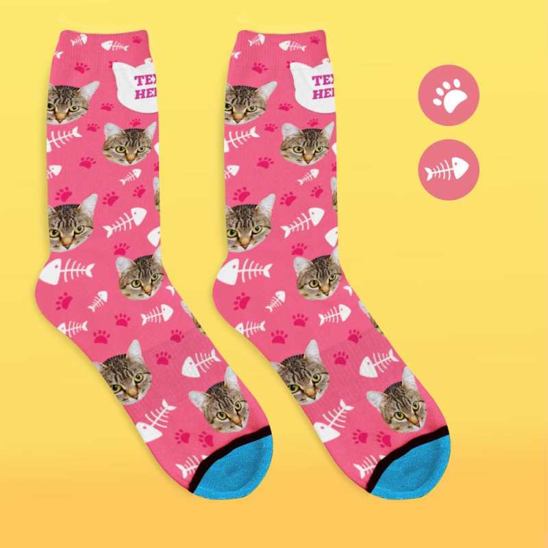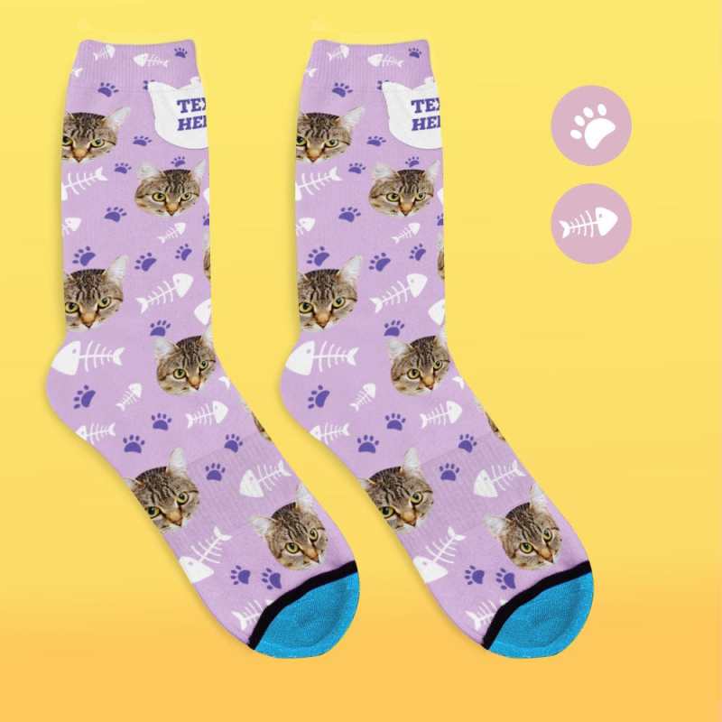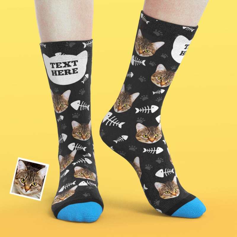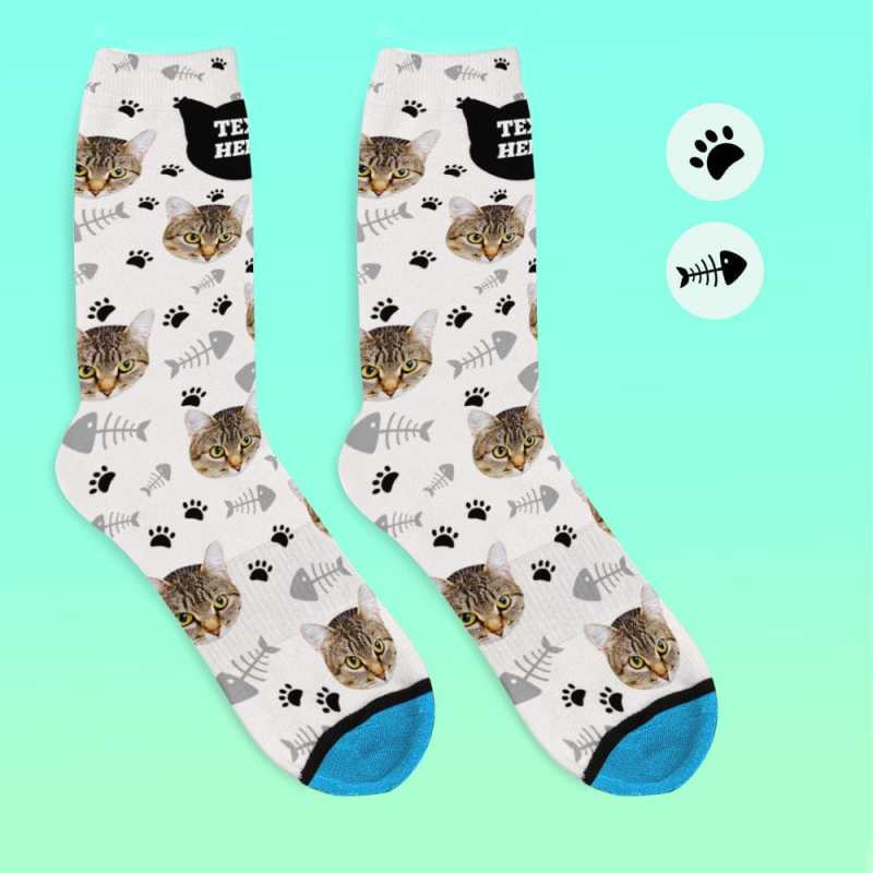 Custom Face Socks 3D Digital Printed Socks Add Pictures and Name - Cat