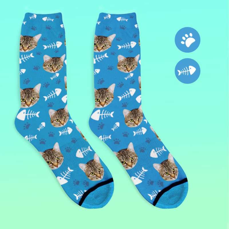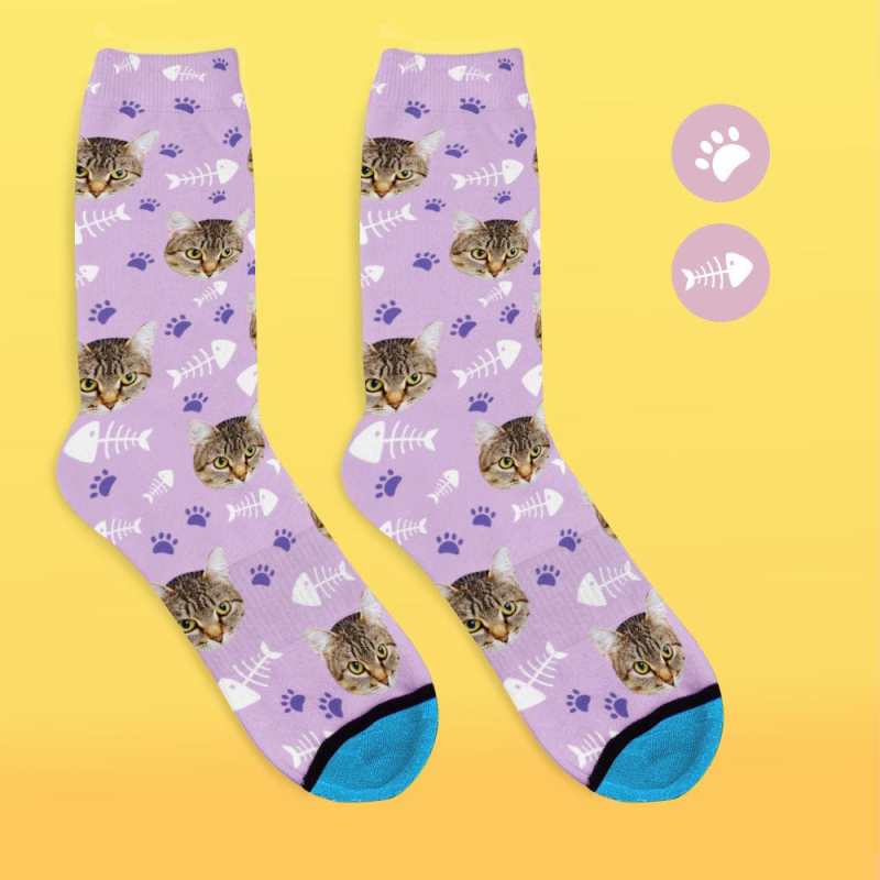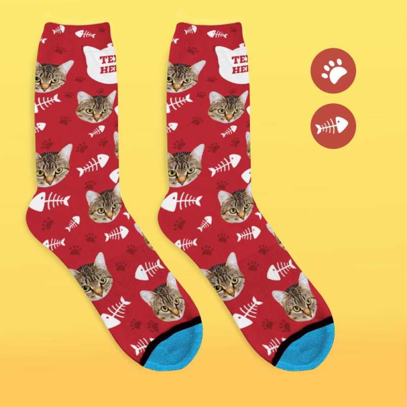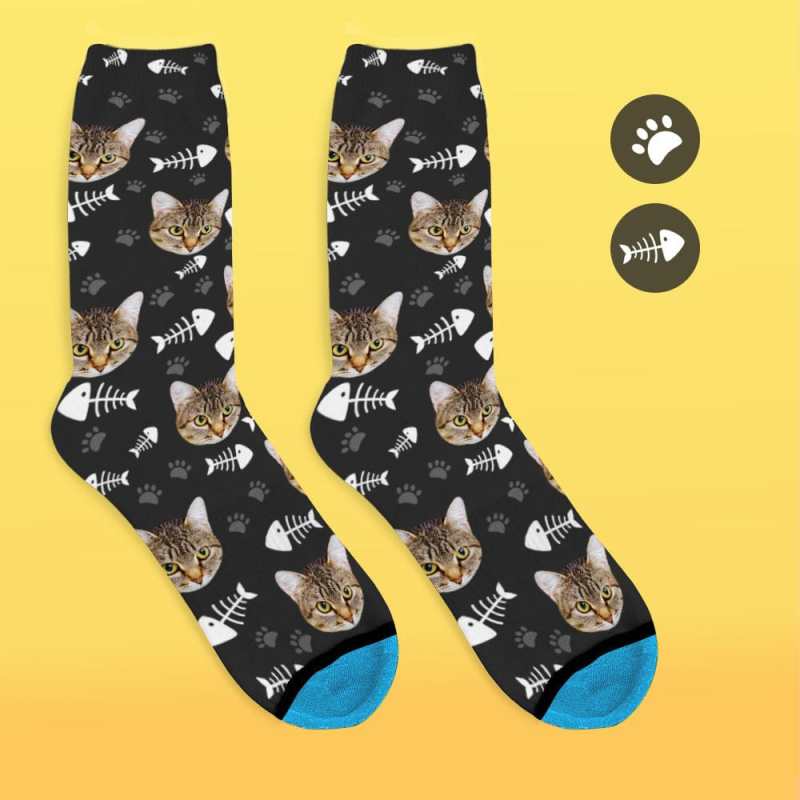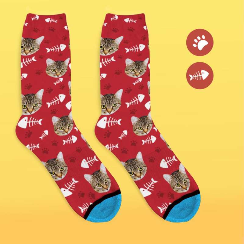Custom Face Socks 3D Digital Printed Socks Add Pictures and Name - Cat