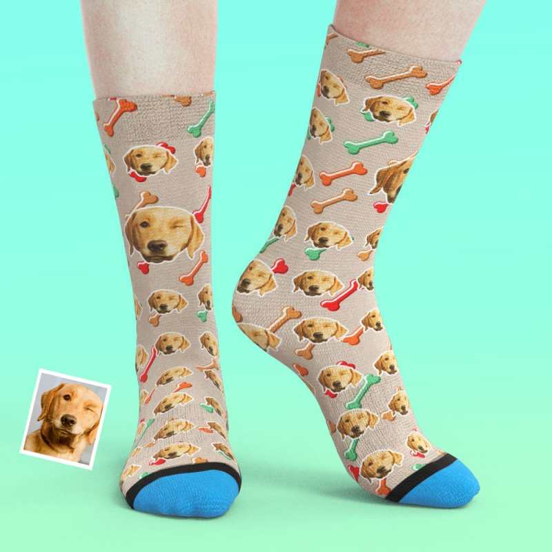 Custom Face Socks 3D Digital Printed Socks Add Pictures and Name - Dog Face On Socks