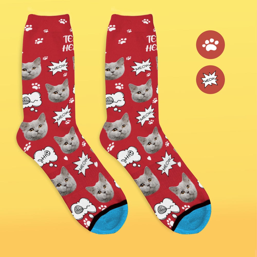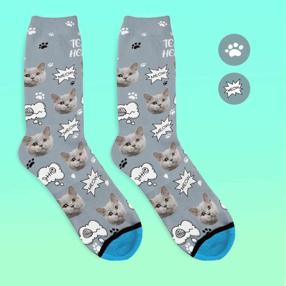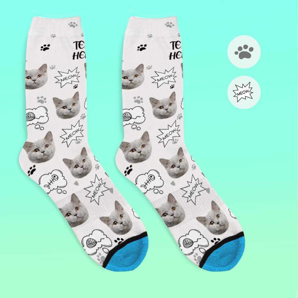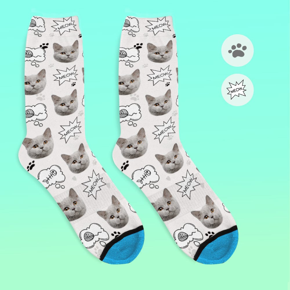 Custom Face Socks 3D Digital Printed Socks Add Pictures and Name - Meow