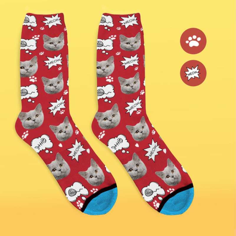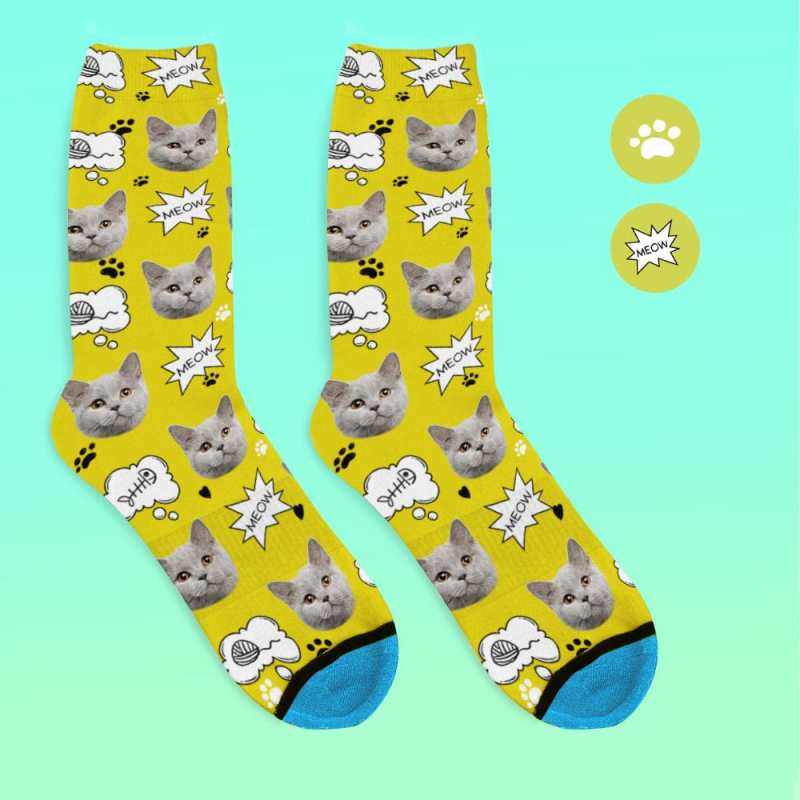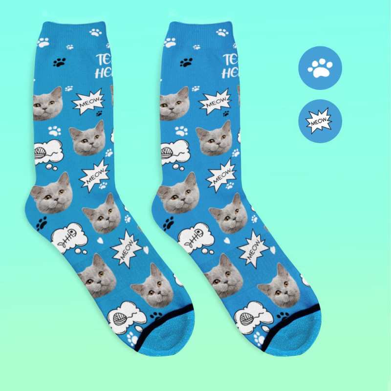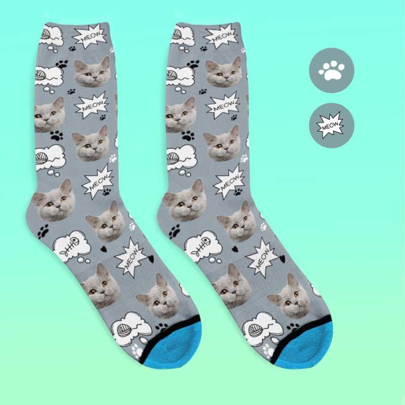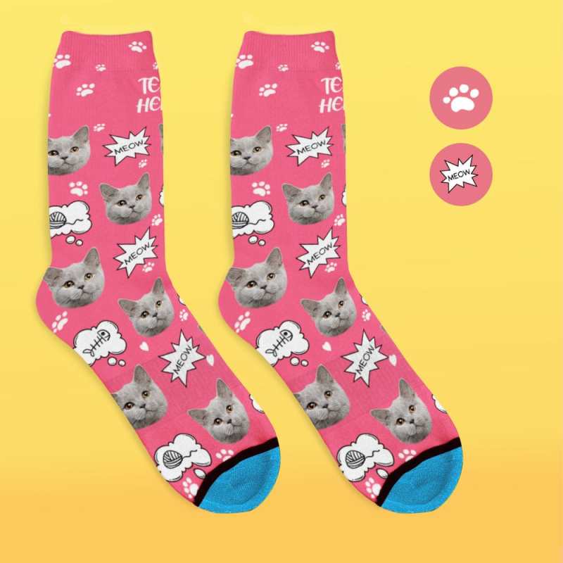 Custom Face Socks 3D Digital Printed Socks Add Pictures and Name - Meow