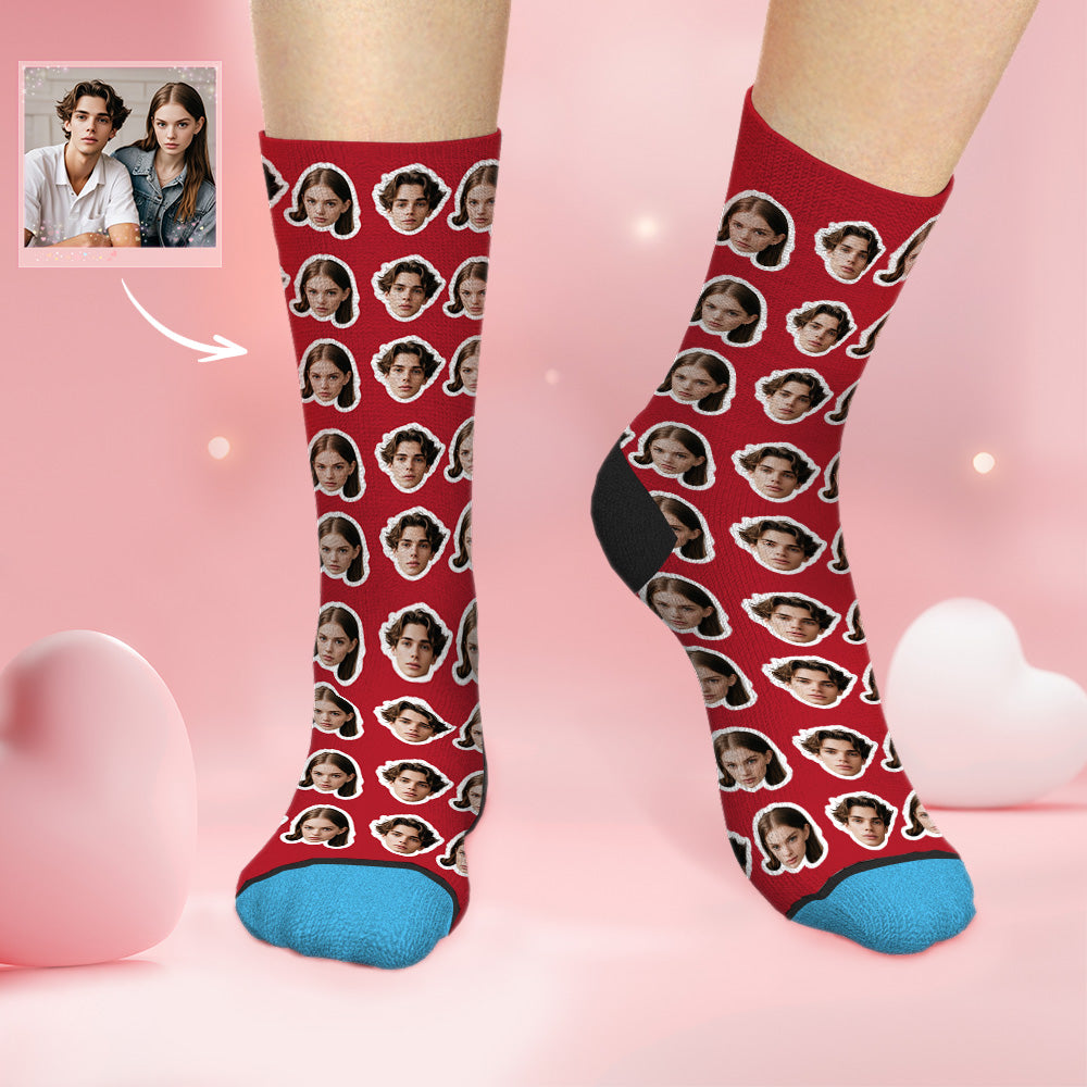 Custom Face Socks 3D Digital Printed Socks With Pictures and Name - Two Faces Valentine's Gifts
