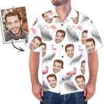 Face Hawaiian Shirt Anniversary Gift- Flamingo & Leaves