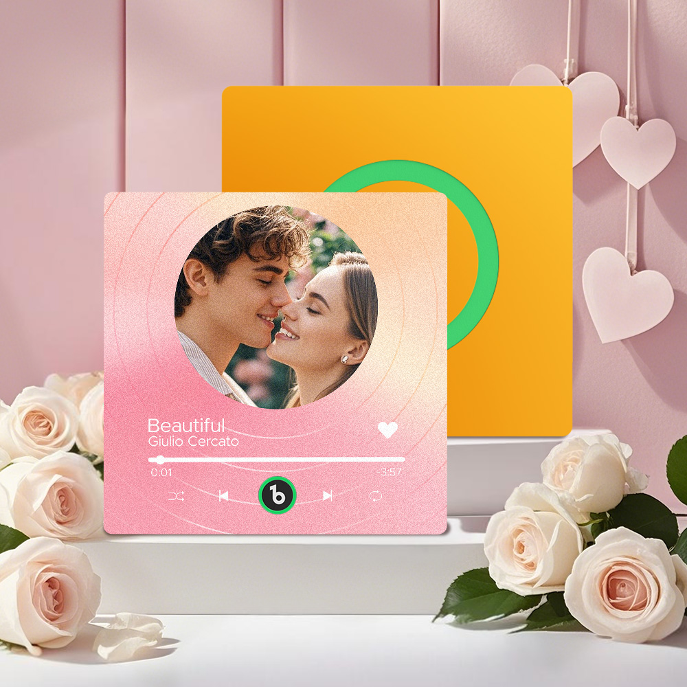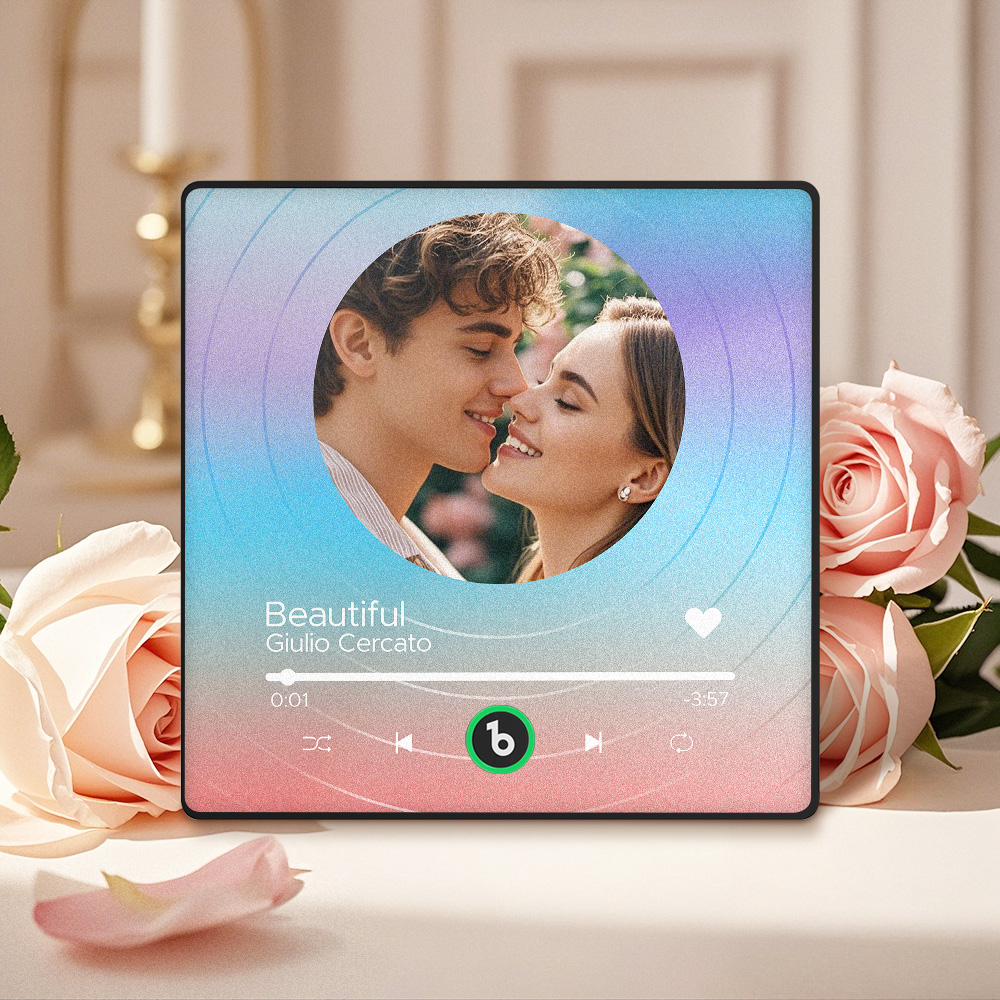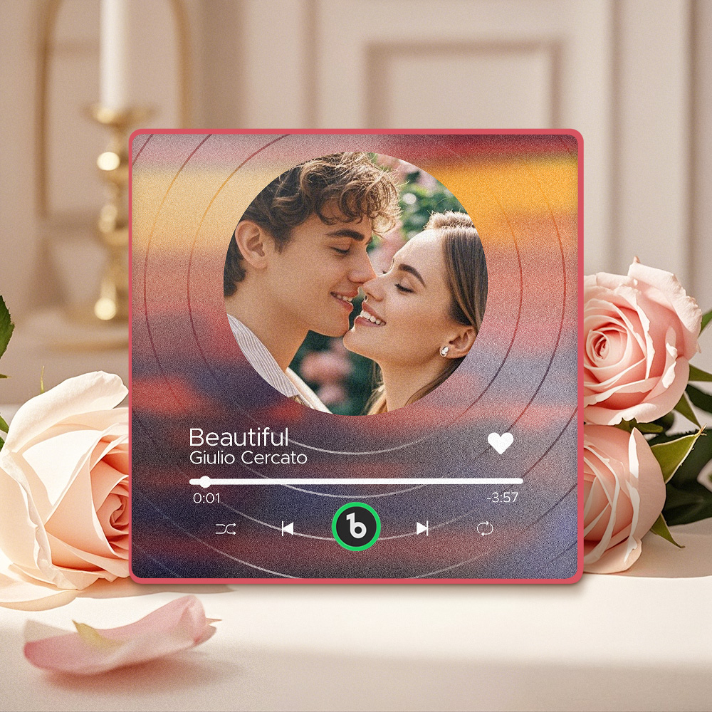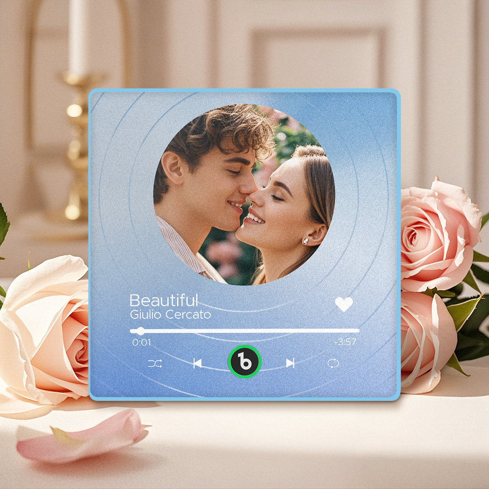 Customized Romantic Singing Refrigerator Magnet - The Best Gift Bring your favorite music to life with our Customized Album Fridge Magnet! This innovative magnet is more than just a decorative piece; it's a functional, interactive device that lets you play your favorite songs directly from your fridge. Whether you want to listen to a relaxing playlist while cooking or enjoy your favorite music while grabbing a snack, this fridge magnet makes it all possible.