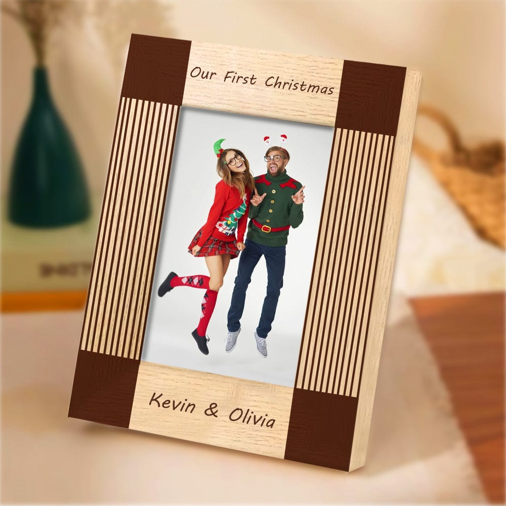 The creative design is delicately UV printed on a handsome, rich wood frame, then personalized with your names, words, and photo for a lasting and memorable keepsake for years to come. You can choose horizontal or vertical orientation.