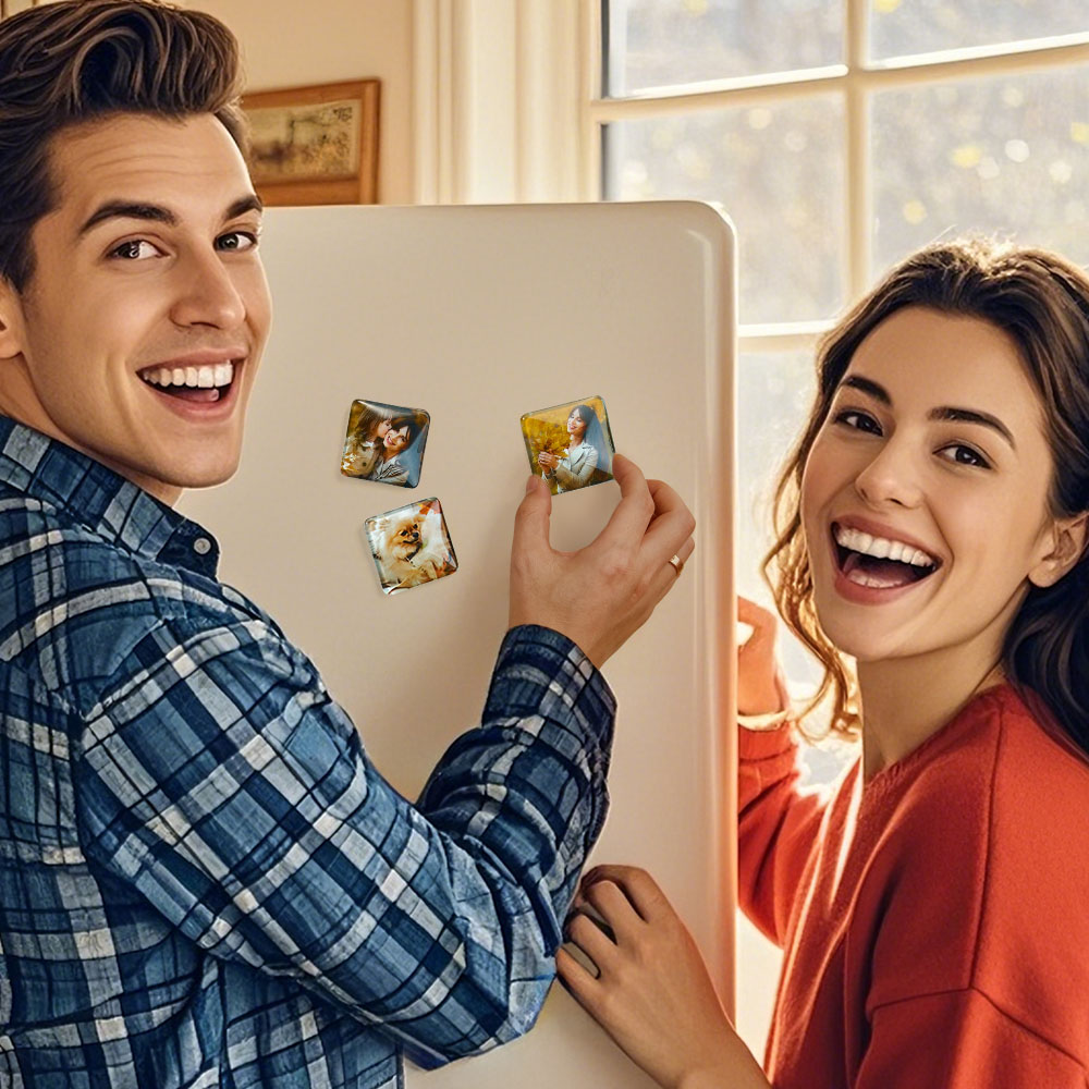 Transform your favorite photos into beautiful and functional home decor with our Custom Photo Fridge Magnet. Crafted from high-quality square glass, this personalized refrigerator magnet offers a unique way to display cherished memories right on your fridge or any magnetic surface.