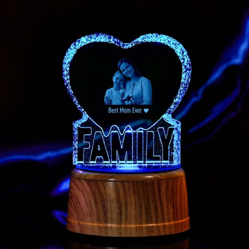 Custom Photo Glass Display 3D Photo Crystal Mothers Day Gift for Grandma