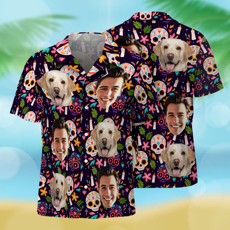 Custom Photo Hawaiian Shirts Personalized Face Mexican Hawaiian Shirt Skull Pattern for Him