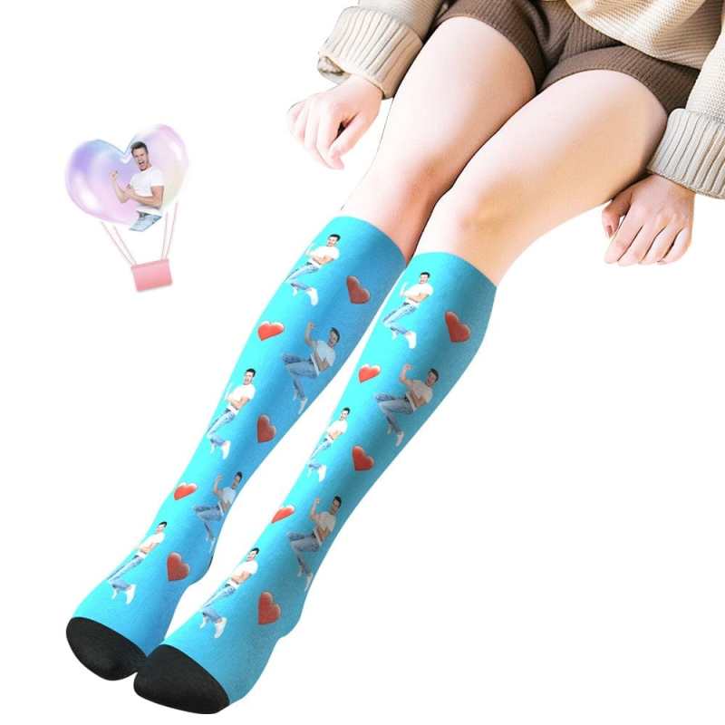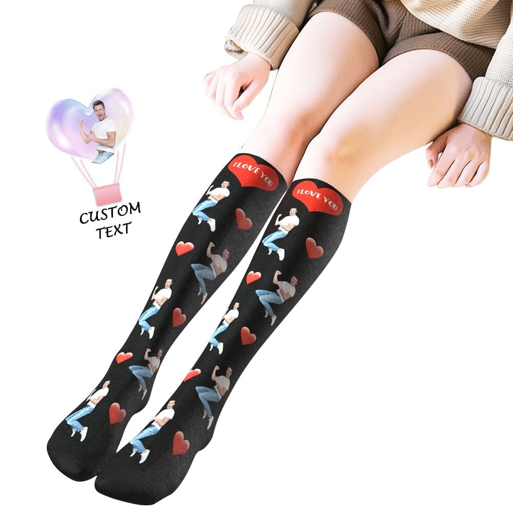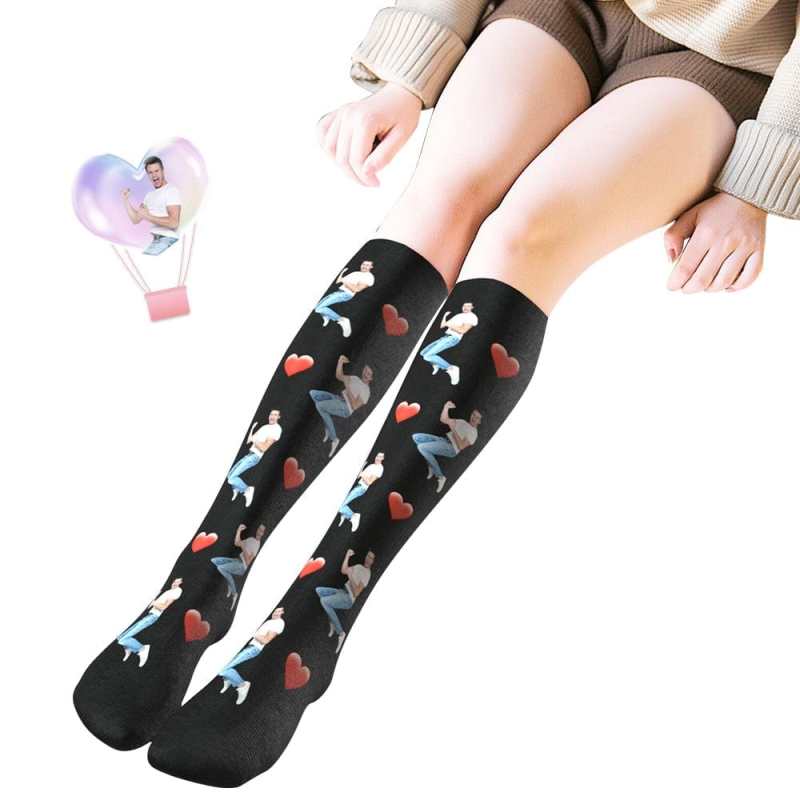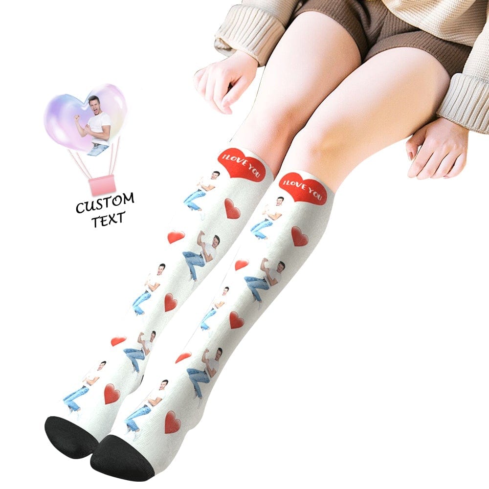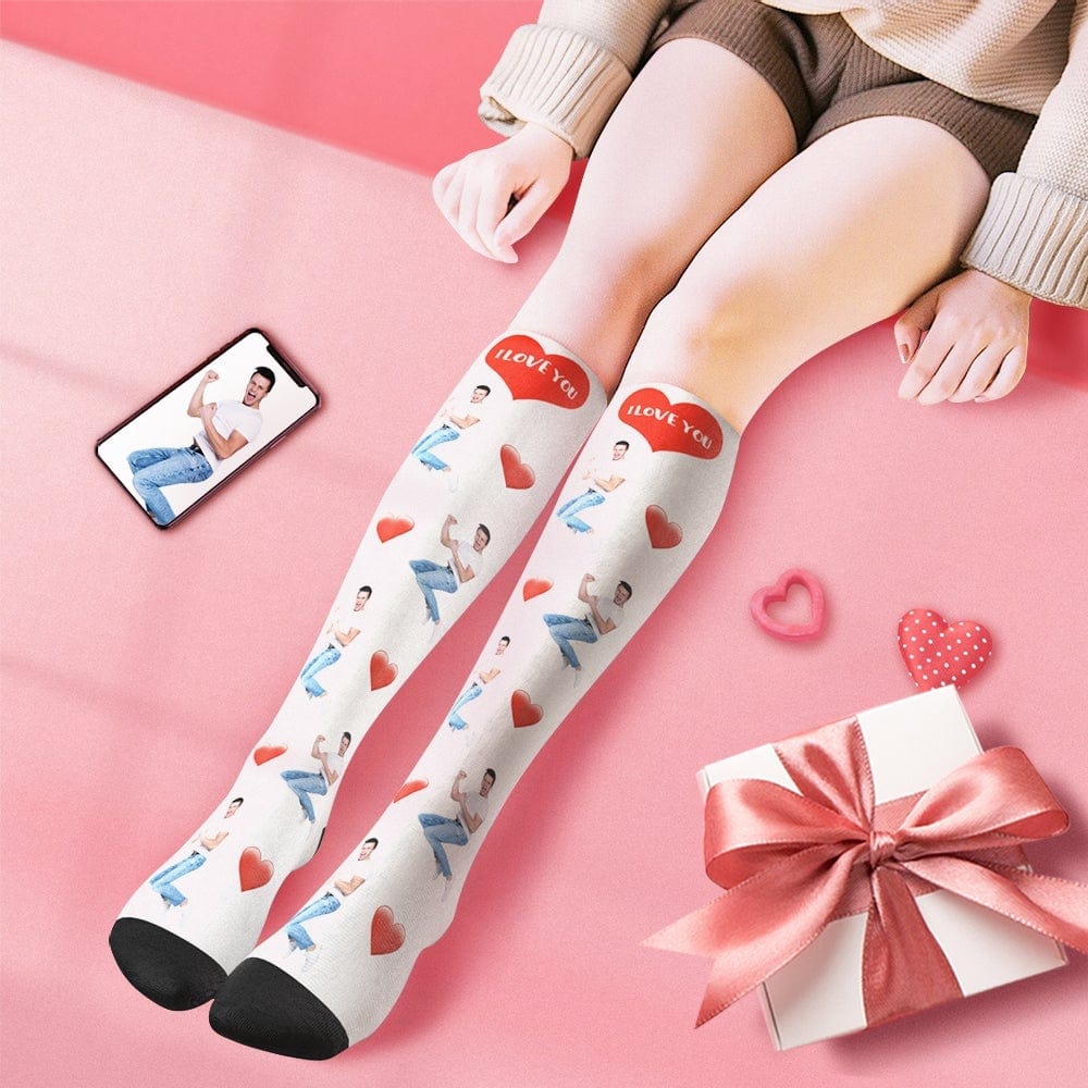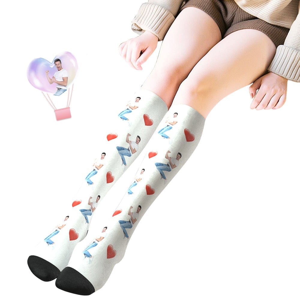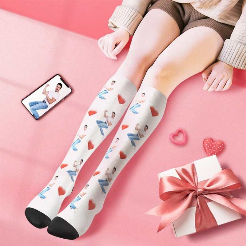 Custom Photo Knee High Socks With Heart Valentine's Day Gift
