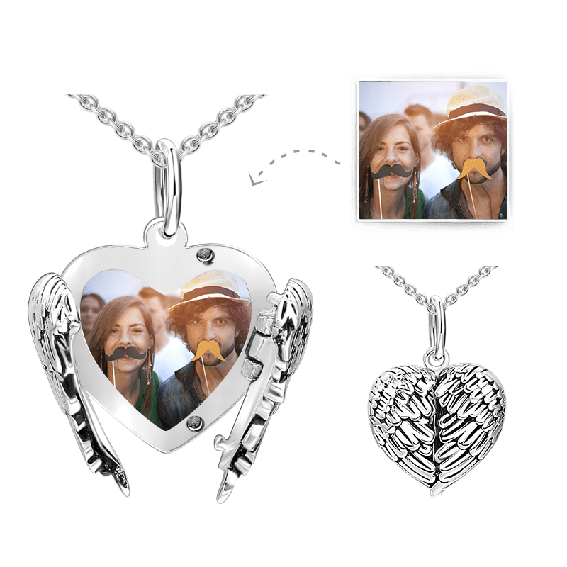 Custom Photo Necklace Mother's Gift Personalized Angel Wing Locket Necklace
