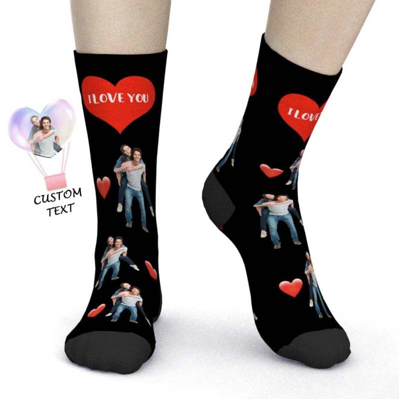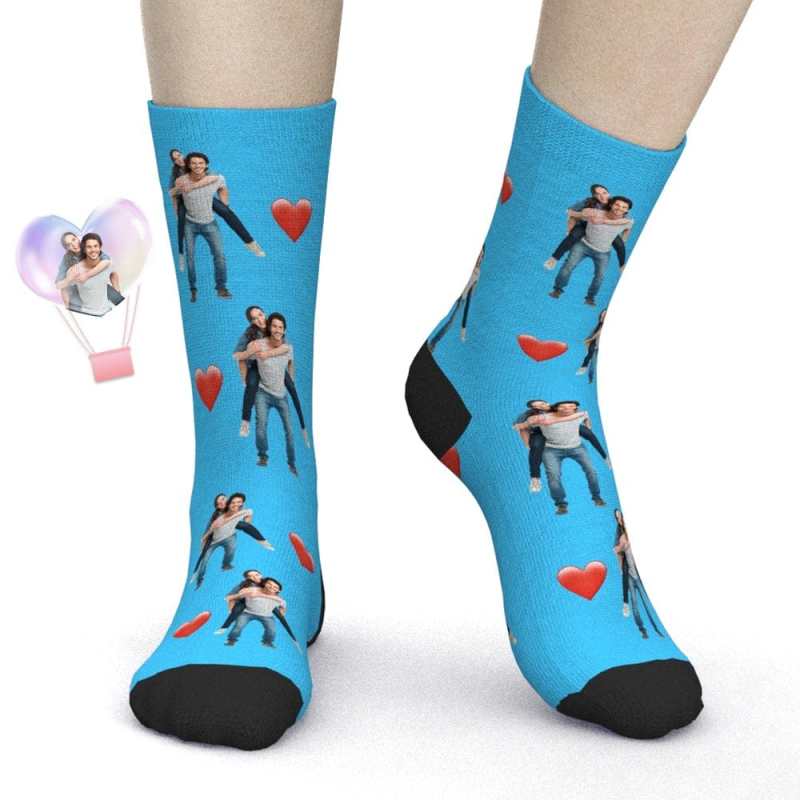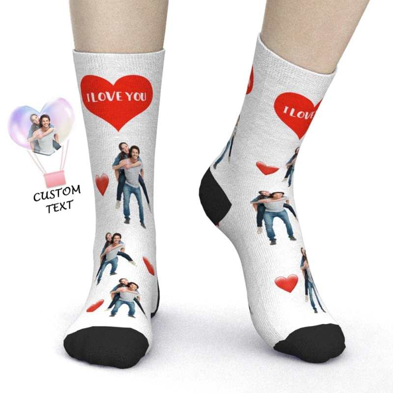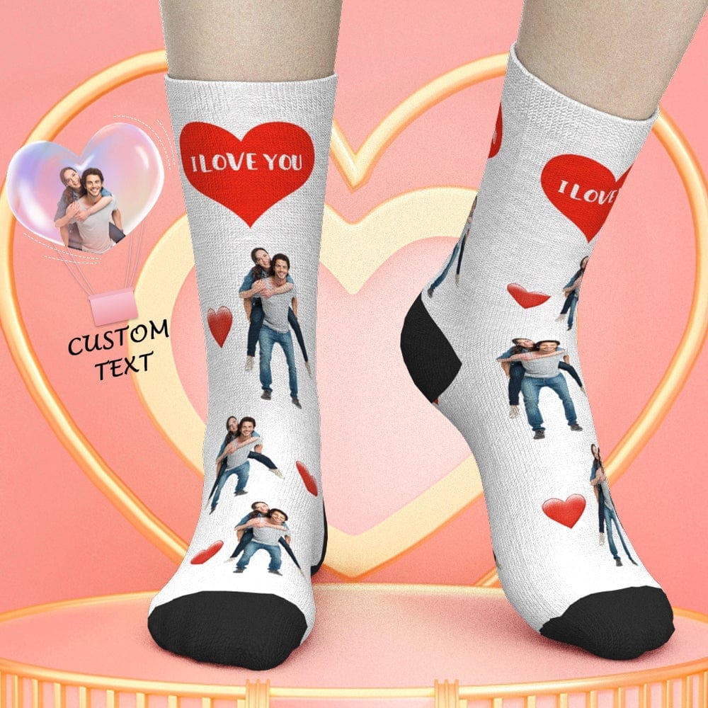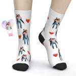 Valentine's Day Gifts Custom Photo Socks With Text Heart Valentine's Day Gift for Couples