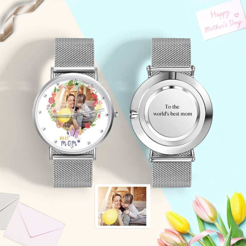 • This personalized watch will be a perfect Mother's Day gift. With an outer casing made from premium alloy, this classic timepiece is precision powered by Japanese movement. All you need to do is pick a memory for the dial and make a gift that goes down in time.