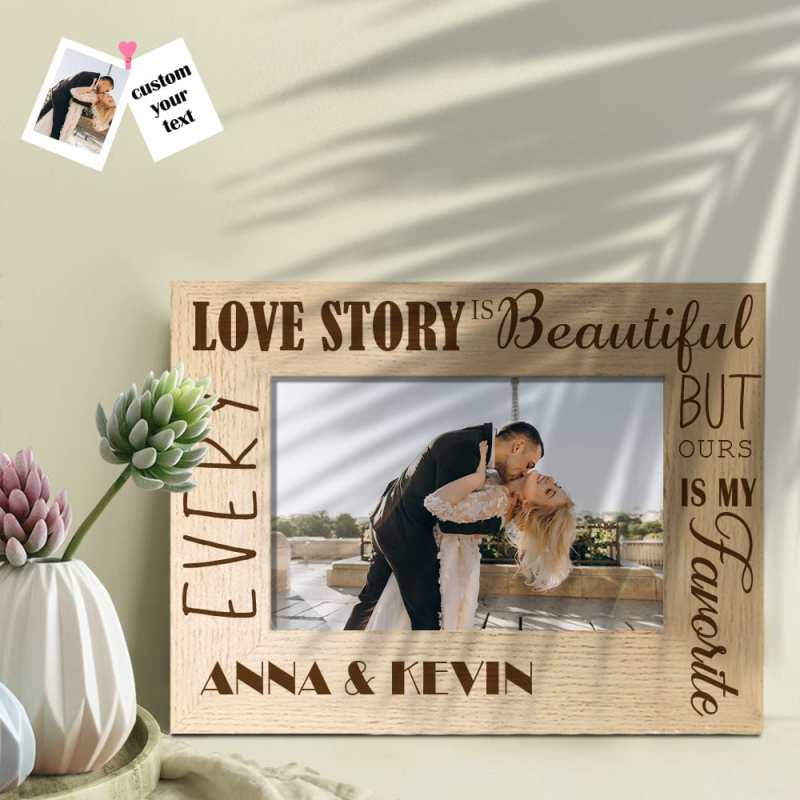 Custom Picture Frame Love Story Custom Names Photo Frame Keepsake Gift for Couples
