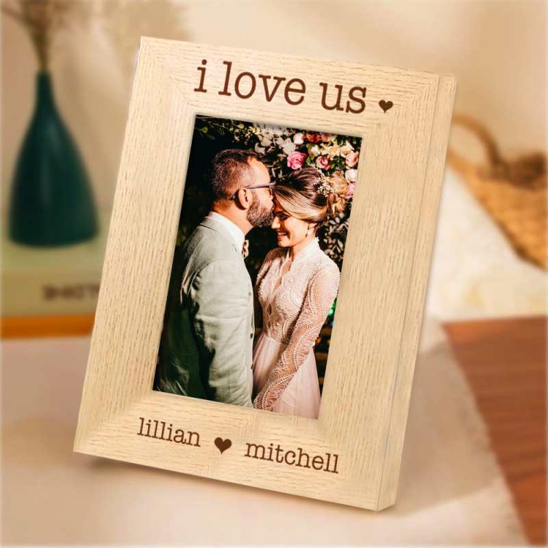 The creative design is delicately UV printed on a handsome, rich wood frame, then personalized with your names, words, and photo for a lasting and memorable keepsake for years to come. You can choose horizontal or vertical orientation.