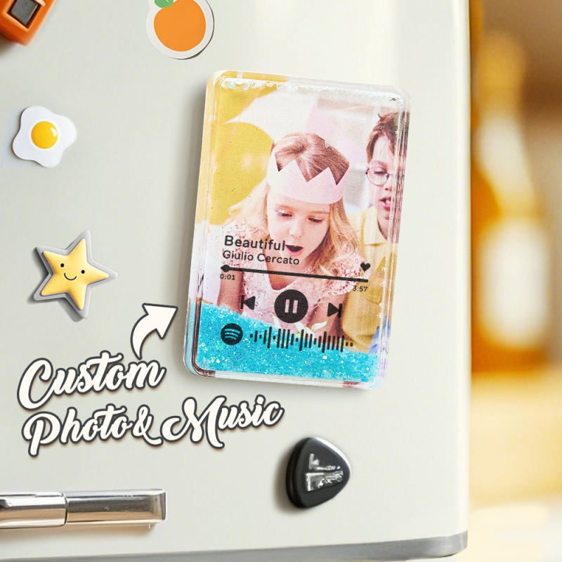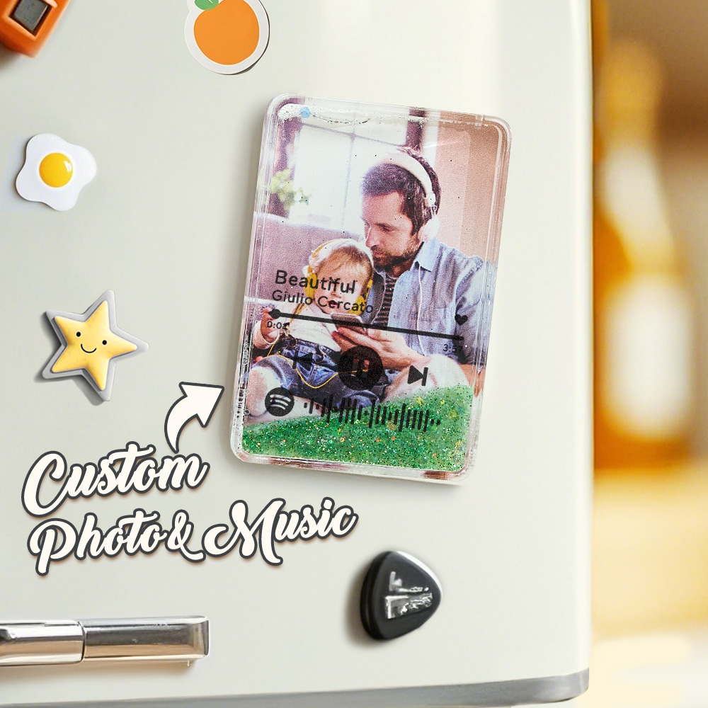 Custom Quicksand Fridge Magnet With Music Personalized Photo Refrigerator Magnet Home Decoration Gift for Couple