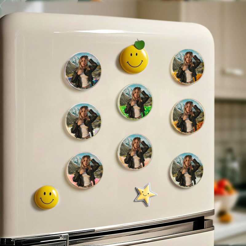 Custom Round Quicksand Fridge Magnet Personalized Photo Refrigerator Magnet for Her